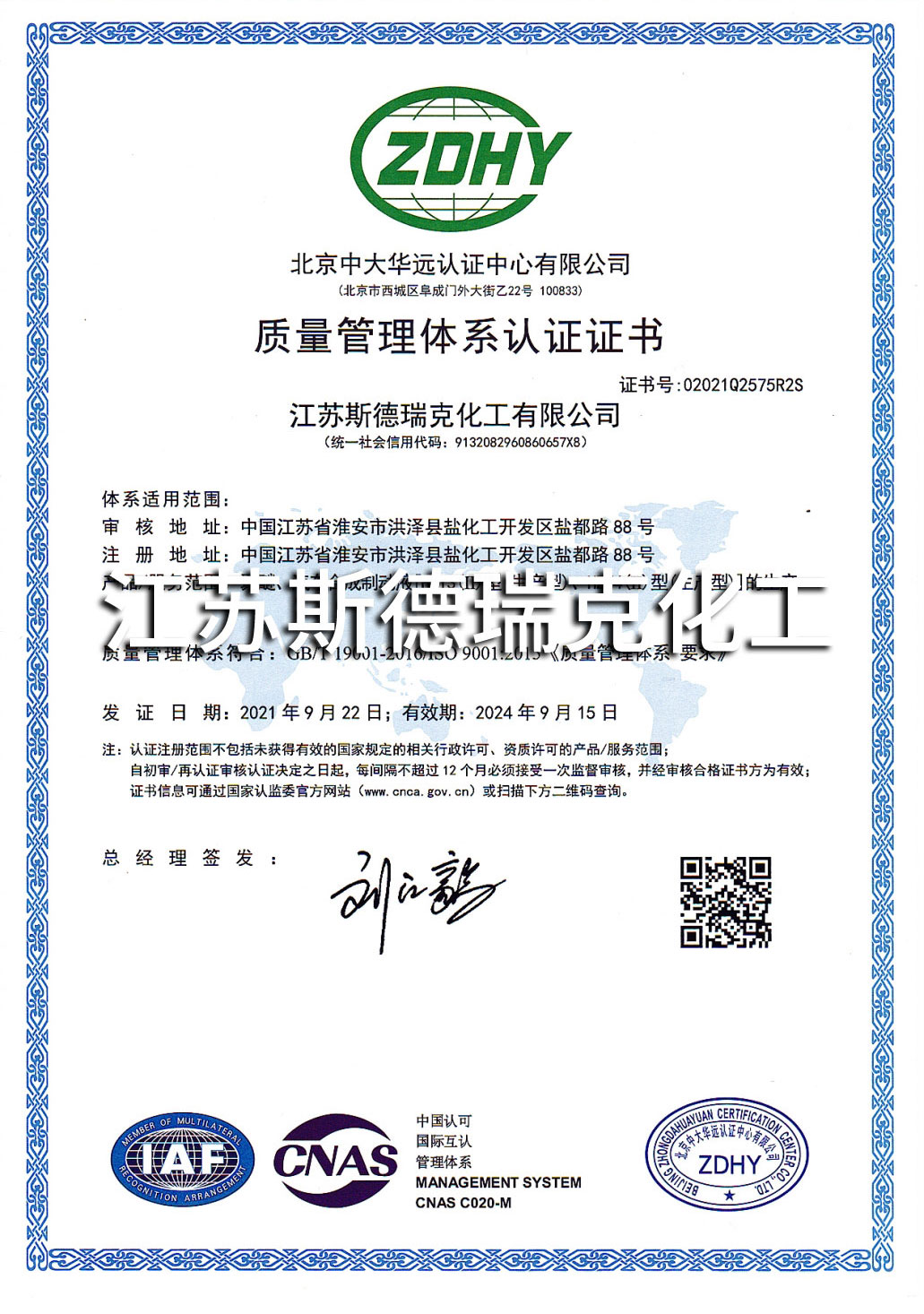 江蘇斯德瑞克化工有限公司成立于2002年,是一家集研發(fā)、生產(chǎn)和銷售一體化的“國家高新技術(shù)企業(yè)”,F(xiàn)有員工100多人,其中科技人員占20%以上;位于江蘇省淮安市鹽化工園,占地面積180畝,建筑面積達(dá)38000多平方米。